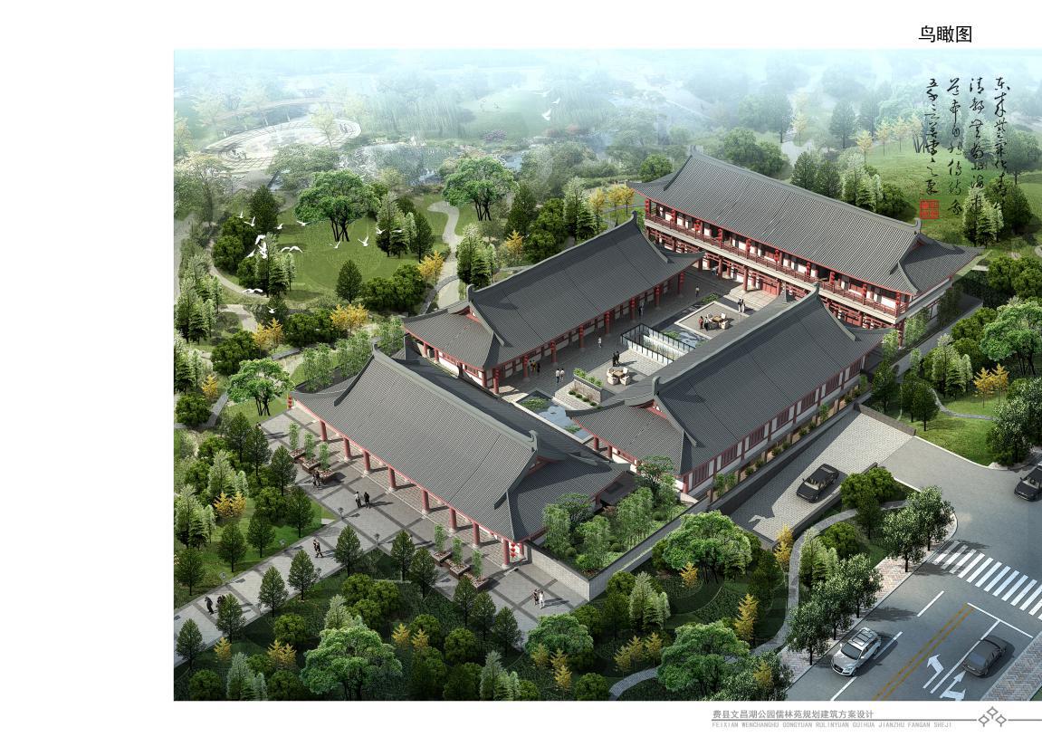 文昌湖公園位于費(fèi)縣自由路上,地處河邊。而儒林苑則是在文昌湖公園里修建的一處休息用的庭院。該處庭院在設(shè)計(jì)初期選擇了多種建筑樣式,最后定格在四合院的建筑風(fēng)格上。