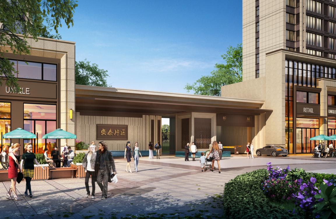 本案采用現(xiàn)代建筑風格,以具有濃厚地域特色的傳統(tǒng)文化為根基,融入西方文化,把亞洲元素植入到現(xiàn)代建筑語系,將傳統(tǒng)意境和現(xiàn)代風格對稱運用,用現(xiàn)代設計來隱喻中國傳統(tǒng)。結合周邊建筑的特點,設計為整體稍偏暖色調(diào),外立面采用米黃色真石漆,沒有復雜體量的堆砌,只是在簡單的體量上憑借精致構件加以點綴。強調(diào)面的實體作用和玻璃的虛化作用,形成對比。商業(yè)體塊感更強一些,在心理感受上既給予人們質(zhì)樸、親切的感受,又結合了現(xiàn)代建筑潔凈簡單的特點。