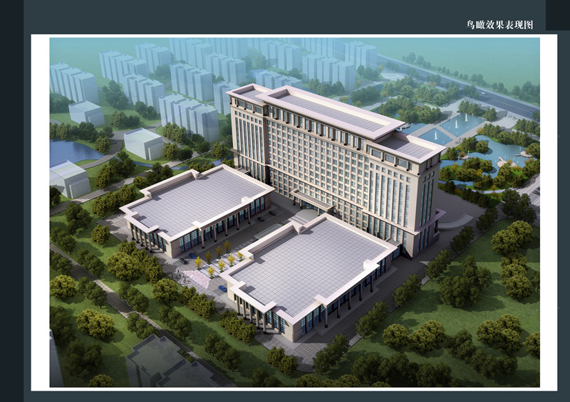 項目基地位于臨沭縣,四至均為政府規(guī)劃道路,交通及自然條件良好。本方案由辦公大樓、會議廳及公共配套服務三個主要體量構成。建筑師以地理位置劃分基地,既區(qū)分場所性質的內外之別,南北高低不同。以一高兩低的三個模塊,組織空間。基地南側與城市主干道聯系緊密,故把辦公大樓這一公共性強的功能排布在此,形成U型的多層建筑體量,舒展大氣。同樣,將功能性相對私密的辦公功能布局在基地的南邊。高層辦公樓,標準層平面呈U型,最大程度地爭取陽光及南向自然景觀。餐廳、咖啡茶座等公共配套服務用房則設置在前兩者的之間,以景觀草坡的形態(tài)展現,既有效的組織了人流,又改善了公共空間品質。